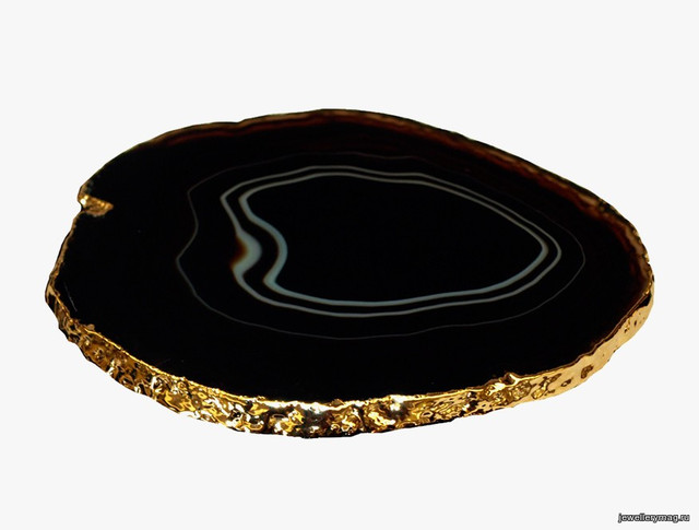 Агат это ювелирно-поделочный камень, разновидность халцедона (разновидность кварца). С точки зрения химии агат является кремнезем (SiO2). В необработанном виде поверхность минерала матовая, а после полировки приобретает стеклянный блеск. Цвета агат имеет разные, например: черный, фиолетовый, коричневый, зеленый, желтый.