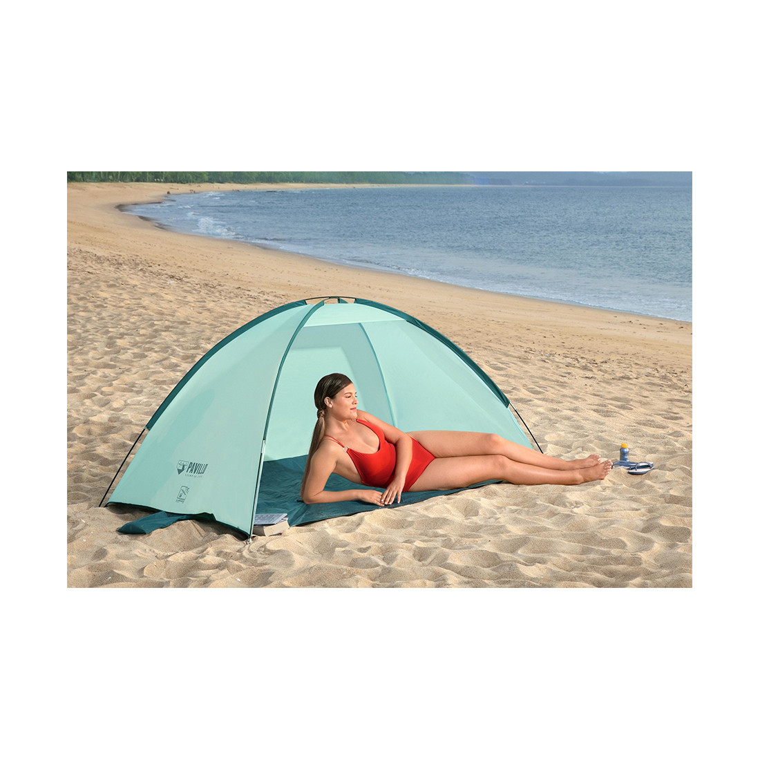 Палатка-кабинка Beach Ground 2 200 х 120 х 95 см, BESTWAY, 68105, Верх - винил PE190T с покрытием PA300mm., Пол - винил PE 110 г/м, UPF 80+, Вес - 1.11 кг, Зелёная, Сумка для переноски